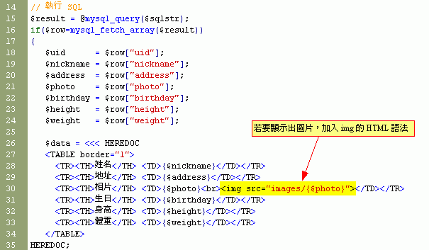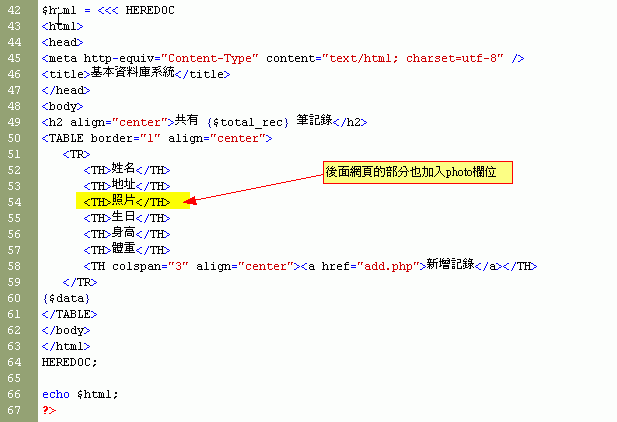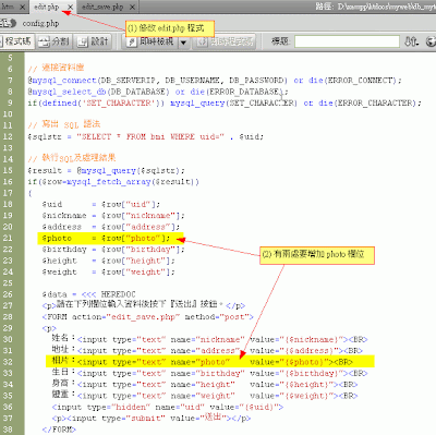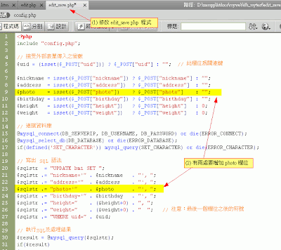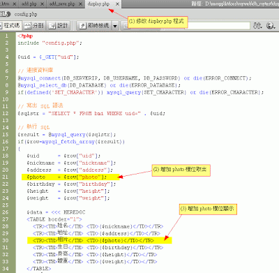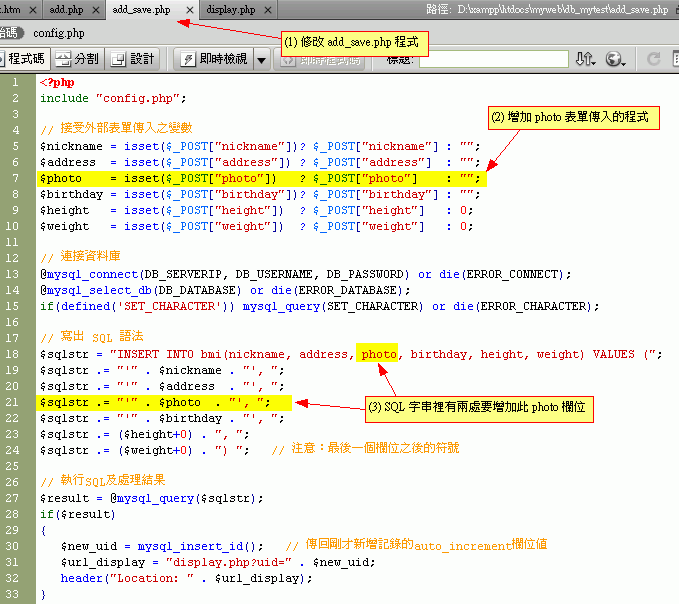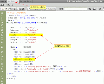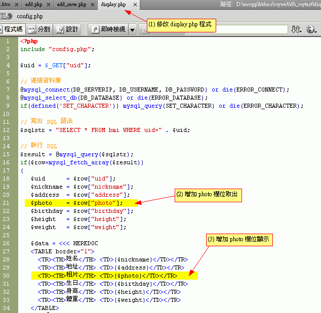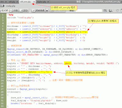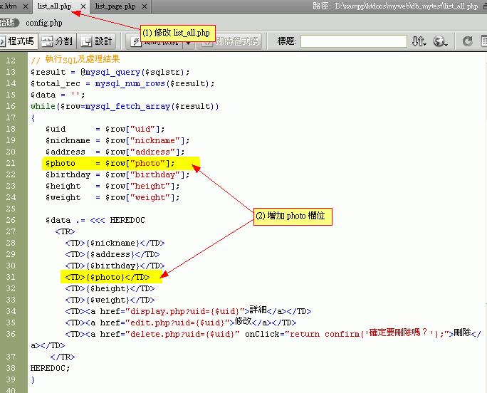根據db1的程式,增加一個欄位『photo』
