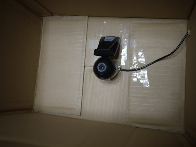 箱子的高度稍微經過測量調整,要讓WebCam攝入的範圍正好是箱子的外框。還有,記得把WebCam線的USB接頭拉到箱子外面。