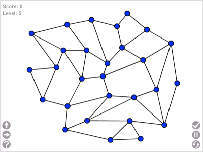 會注意到它,是因為似曾相似,然後從遊戲的英文名稱─Planarity (平面化),指的便是 Planar Graph (平面圖) 的概念,這在資料結構、圖論、離散數學、演算法等學科裡,都有類似的問題。不過玩遊戲還要管到數學理論,平白無故增添許多壓力,不過還是有幾個讓我感興趣的議題先記錄在此: