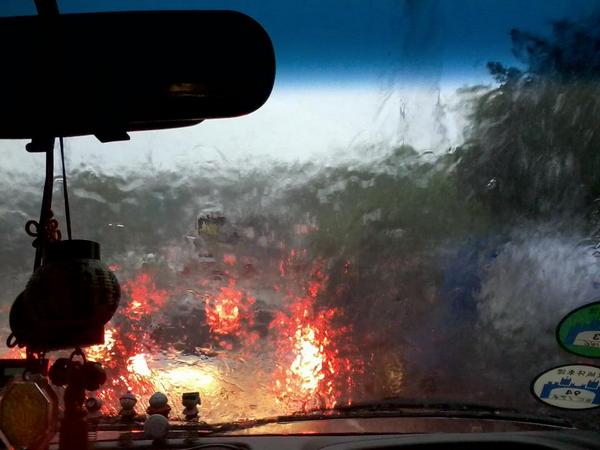 陳彥綸 突如其來的大雨使擋風玻璃上都是水
