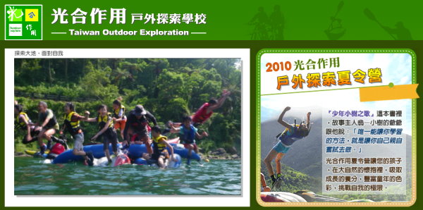![]() | 光合作用夏令營(1):游泳、攀岩 | 2010-07-04 | |