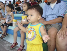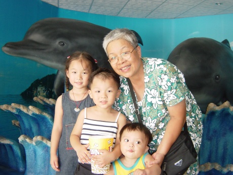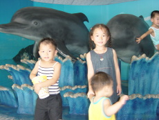 等到海豹表演時,就已經心不在焉的,一直要吃進場時買的爆米花,最後是水上芭蕾及跳水表演,大寶幾乎都不看,只管吃,不過他有看到海豚就不錯了,而婷婷及達達倒是都很專心地看完表演。相信這趟海洋世界之行,也帶給孩子們蠻深刻的印象。