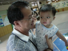 阿公難得有機會和大寶一起出去玩,特別愛抱大寶!