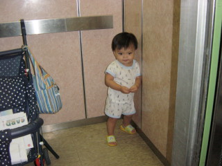 大寶近來不太喜歡坐娃娃車,都要自己走了,常常一進電梯就往最裡面走!