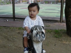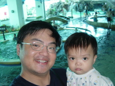 第二天早上,到溫泉館去泡溫泉,大寶可能沒見過這麼大的水池,也沒坐過游泳圈,所以大部份時間都是一臉拙拙的,如果單看他的臉,會覺得溫泉館不好玩,但是看婷婷與達達,則是玩水中的溜滑梯玩得不亦樂乎。