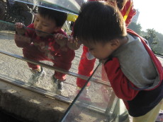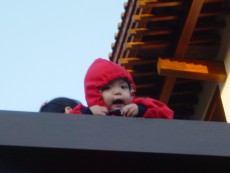 才剛進門就一副無奈的表情,但是沒多久就玩起來了。
