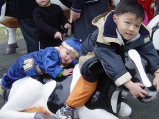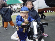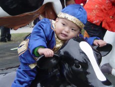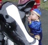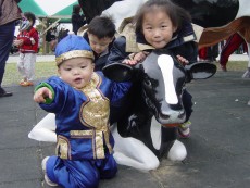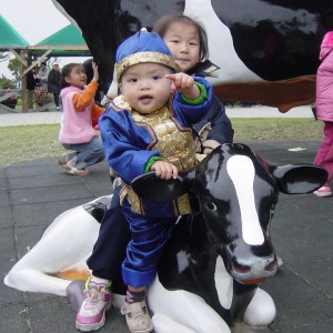 大寶好像特別喜歡這隻假小牛,一直爬上爬下,都不肯走。