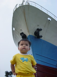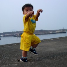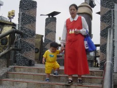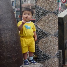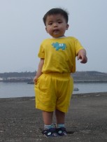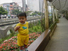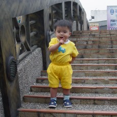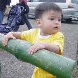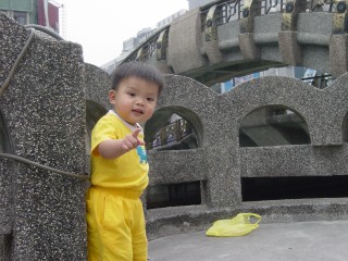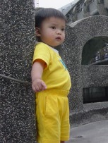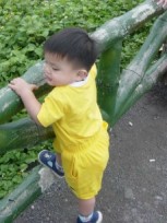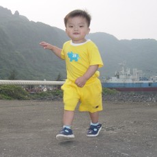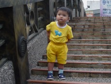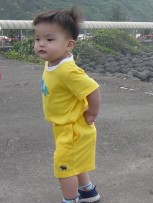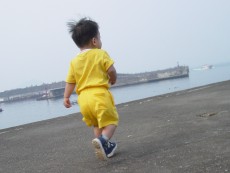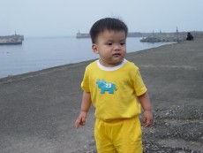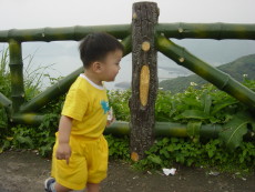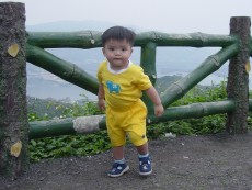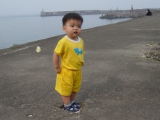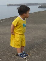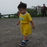 之後,又驅車開呀開地…爸爸說:去和平島好了。但是卻不知不覺地開到另一邊,那是八斗子。大寶在八斗子頂端的一處觀景平台玩,他對地上的小石頭很有興趣,一直踩一直踩,把一雙還新新的鞋子弄得又是沙又是塵。不過,大概是因為可以輕鬆地到處走走,所以還蠻高興的。