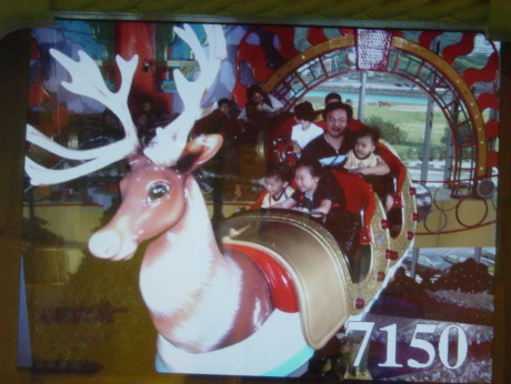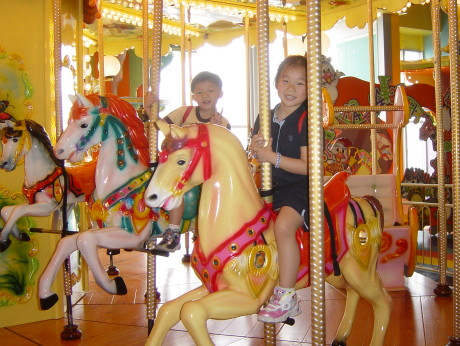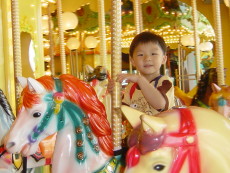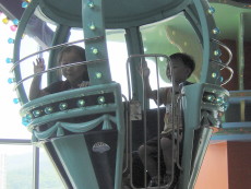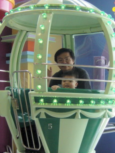 熱汽球的摩天輪,轉呀轉地,大寶看到姐姐和達哥一會兒從左邊起來,一會兒從右邊下去,不斷地對他們『嗨~~』