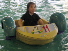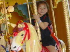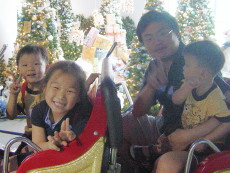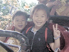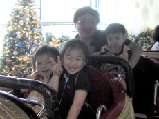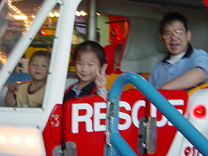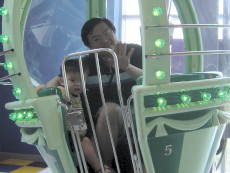 最刺激的雲霄飛車,三個小孩都是第一次嚐試。爸爸把大寶抱得緊緊的,他除了第二圈有點變臉外,也都還好,婷婷和達哥玩得太高興了,達哥一直喊『酷哦!酷!』