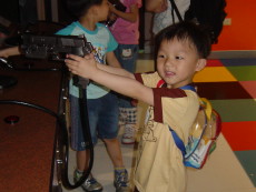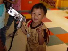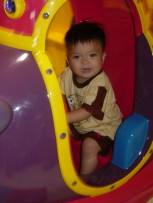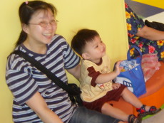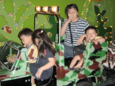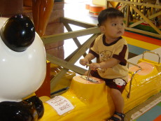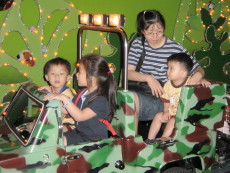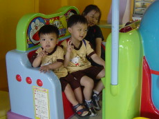 到木柵動物園旁的劍湖山Zoo Mall兒童玩國,這是一座室內的兒童遊樂園,有很多中小型的電動遊樂設施。今天達哥和大寶還穿一樣的衣服。
