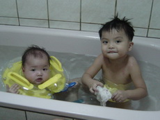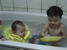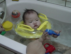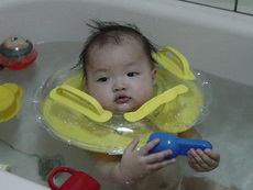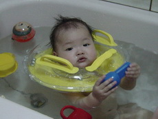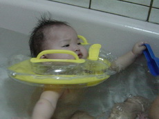 在babyhome網站上參加團購,買回來的脖圈。這個給蓉蓉帶,感覺已經太小了,而且她不喜歡哇哇叫,所以用了一次只好收起來,等小潔再來玩了。