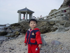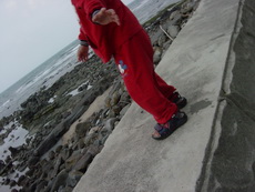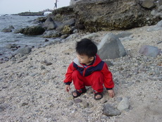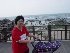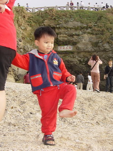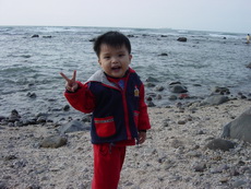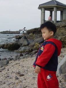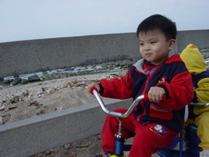 下車後,爸爸把寶寶抱到堤防上看海,因為風很大 (很大很大),寶寶嚇得直叫要下來。匆忙之中,爸爸也無法對準鏡頭,所以留下了第一張奇怪的照片。