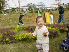 離開後又往溪海花卉園區,結果沒啥好逛。早上來的時候,高速公路大塞車,到了瑞奇牧場,偏偏又沒得吃,大家都又餓又渴,在回程的路上,買了路邊的蔥抓餅及飲料,結果寶寶吃了一半,就說:『吃不完也喝不完,怎麼會這樣?!』