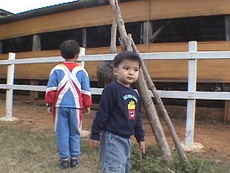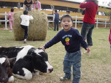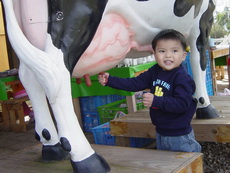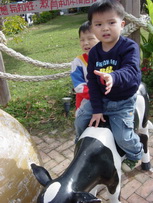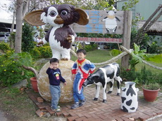 今天出門時,寶寶突然說:要找達哥一起出去玩。兩兄弟也好一陣子沒有一起出去玩了,所以寶寶特別興奮。原本計畫往大園的溪海花卉園區,就快到目的地時,臨時看到瑞奇牧場的指標,就急急地轉彎到這裡去了。