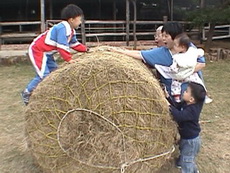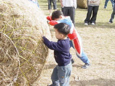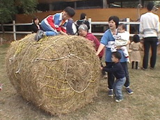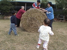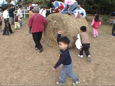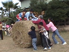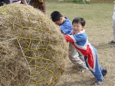 滾牧草,達哥玩得很高興。