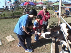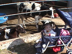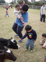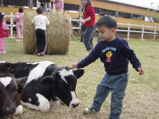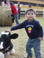 寶寶摸摸小牛。