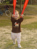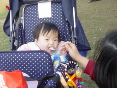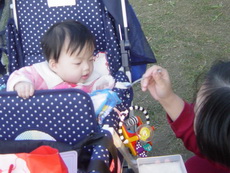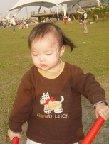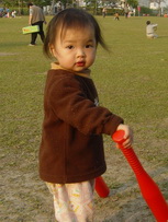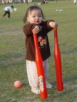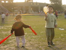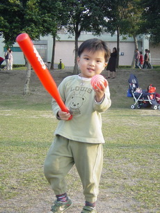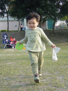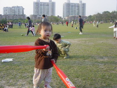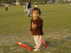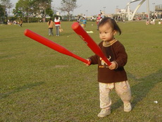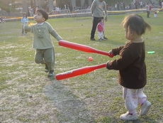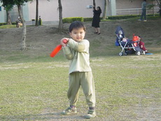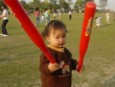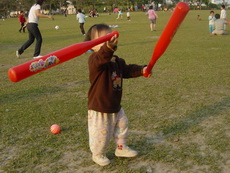 車上隨時都有可以玩的東西,所以到新莊運動公園跑跑時,就隨便拿了球棒和吹泡泡的來玩。