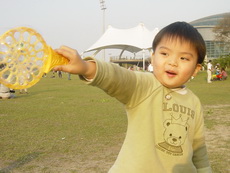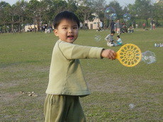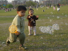 這個吹泡泡的玩具,實在有夠受歡迎,好多小朋友都靠近過來想玩,而玩過的小朋友幾乎都不想走。
