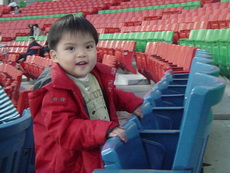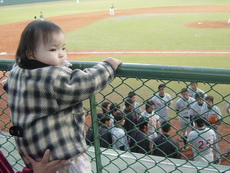 爸爸的學校有棒球隊參加成棒甲組的比賽,所以抽空到球場看球,和職棒不同的是,沒有太多人在看球,進去也不用門票。