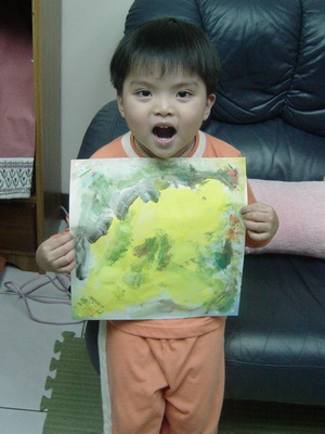 用水彩在紙上塗,沒有什麼參考原型,純粹讓寶寶拿筆隨意畫畫。