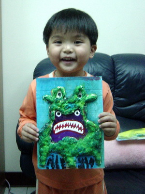 問寶寶這個作品叫什麼名字?他說這是『怪獸』