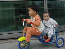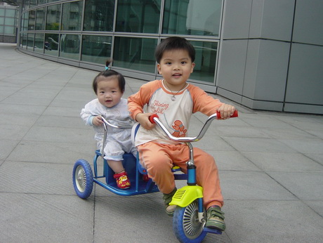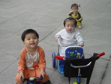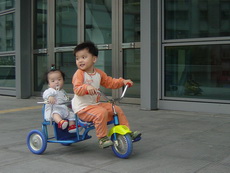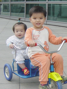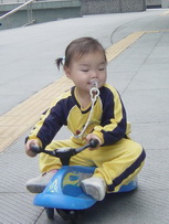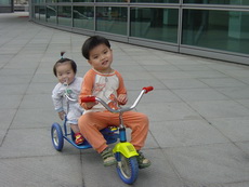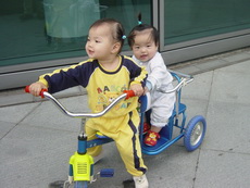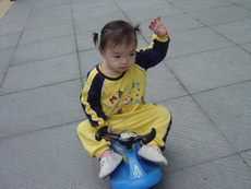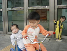 專程帶了二台車來騎,寶寶可以載小潔,而蓉蓉則自己玩搖搖車。