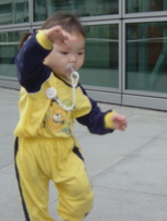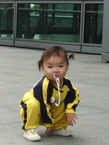 後來蓉蓉自己不騎車,也不坐娃娃車,她好像比較喜歡自己下來走走。
