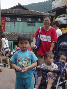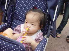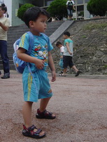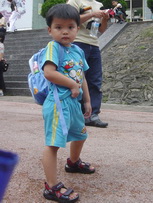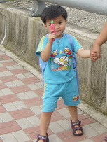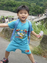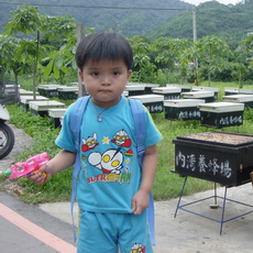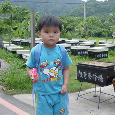 路邊也有養蜂,蜜蜂到處飛已經有點可怕了,要寶寶站靠近一點照相,他緊張得不得了,一照完就趕快跑走。