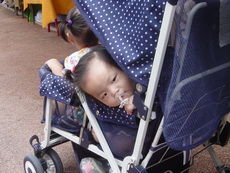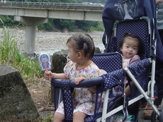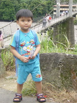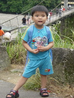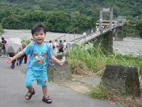 內灣吊橋,我們大夥也推著推車到河的另一岸去玩。