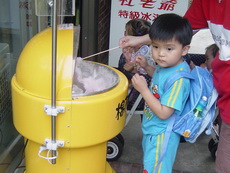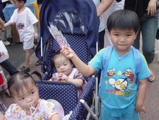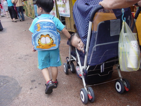 戲院外是老街,人潮很多,攤販及店家也很多。逛著逛著,小潔還把頭伸出來往後瞧瞧大家有沒有跟上。