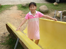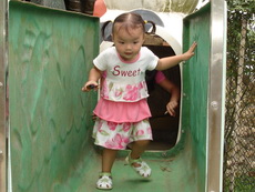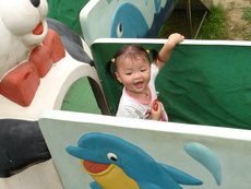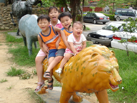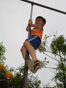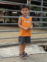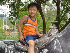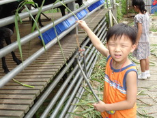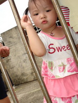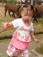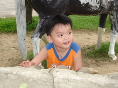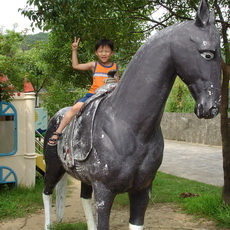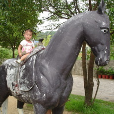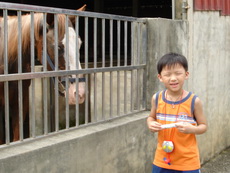 這匹馬這麼高,寶寶不敢坐,可是蓉蓉卻一點也不怕,她要上去騎馬。