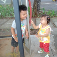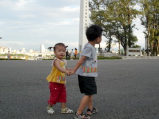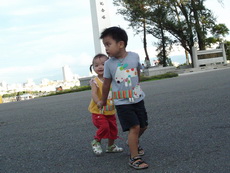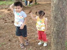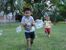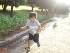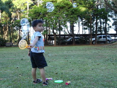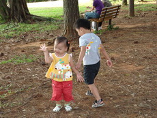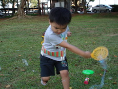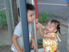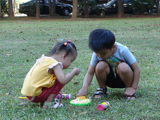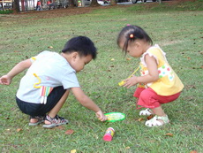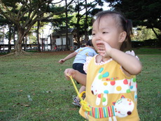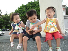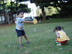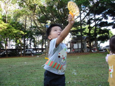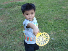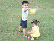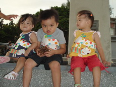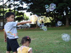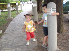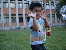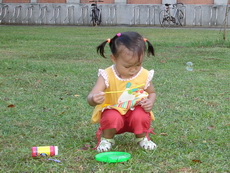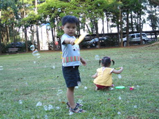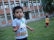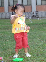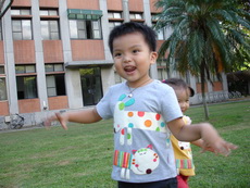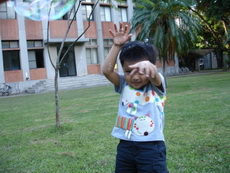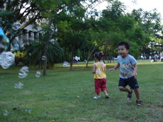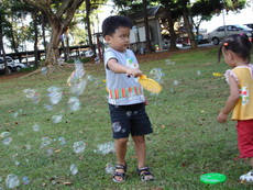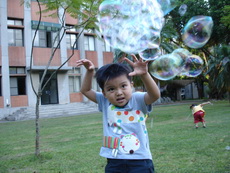 漫無目的地開車在中壢找玩的地方……找得到才奇怪……所以就來到中央大學讓孩子們跑跑,反正車上遊戲的物品一應俱全,就拿了吹泡泡水去玩囉。
