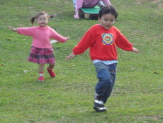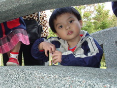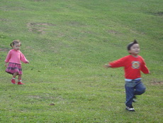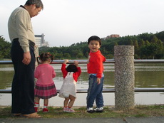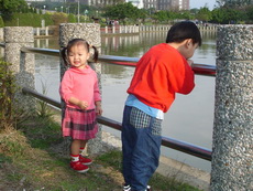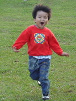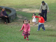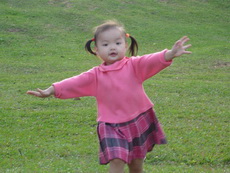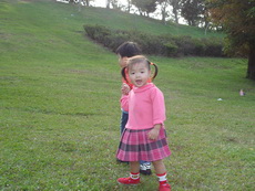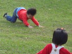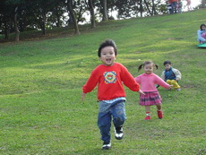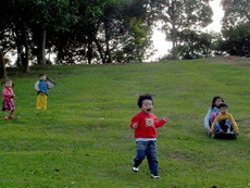 之前來這裡都是在週圍找塊空地下來玩球,反而是正中央志清湖後面的一大片草地沒來過,三個人看到這麼大一片草地,而且又有斜坡可以玩,都很興奮地一直跑上跑下。