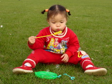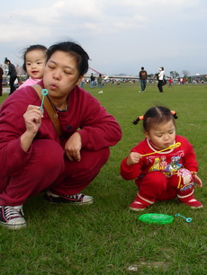 風很大,泡泡都不用吹,只要對準風向就一整排的泡泡衝出去了。