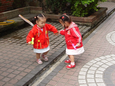小潔:我過來了,換我扶你過來 (咦,為什麼蓉蓉跑到另一邊去了?)