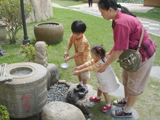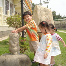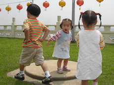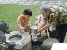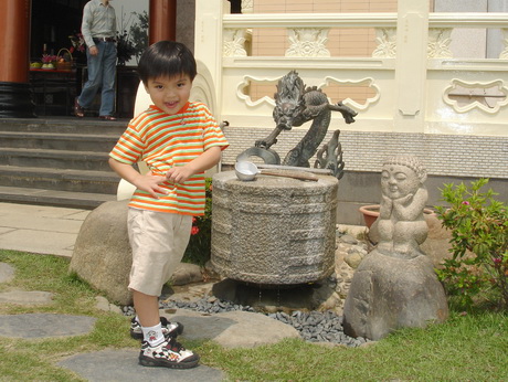 清明節到台中烏日的善光寺拜拜。小潔今年的元旦也有來,但因為他當時都在娃娃車裡睡覺,所以這次算是她第一次在寺裡走走。不過她喜歡走自己的路,常常我們往東,她就偏偏不跟上大家,自己跑到別的地方去了。