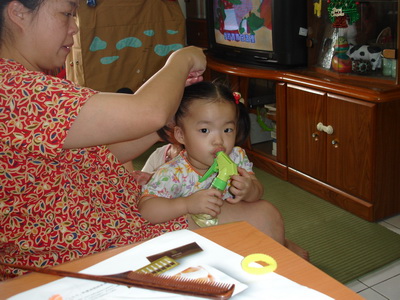 媽媽幫小潔綁頭髮,有時需要把頭髮噴濕,於是會準備有噴嘴的小瓶子。每當頭髮綁到一半,媽媽把小瓶子放下時,小潔便會拿來,嘴巴就對著噴嘴的頭,開始吸吸吸。有時裝得滿滿的一瓶水,等媽媽要再用的時候,居然已經全部給吸光了,這瓶子的水真是比汽水果汁都還要好喝。