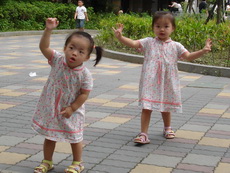 考試的時間還沒到,先在外面活動活動,但又怕玩得一身大汗,真難拿捏。