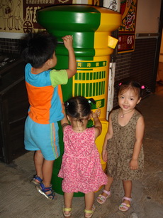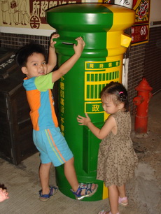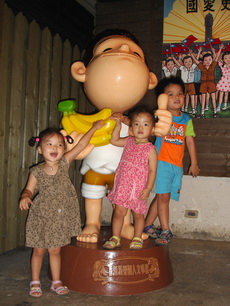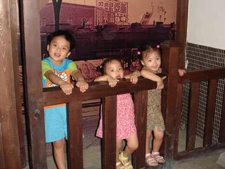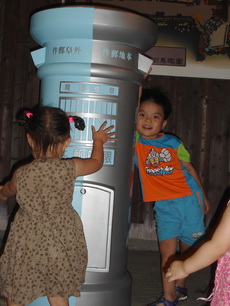 呵呵,把這裡也當成一則旅遊記事,實在有點灌水的意味。因為今天本來的計畫就是到台灣故事館吃飯,當然另一主要的目的也是到這裡看看懷舊的街道、商店,但是到的時候居然一大群人就在我們前頭蜂擁進入。到底下後才發現,有四攤訂席的客人,而且都是不小的團體,再加上今天是星期日,戶外大太陽,又是暑假開始…種種的狀況讓我們覺得來得真不是時候,因此決定不買票進場,待下次避開人潮再次前來。