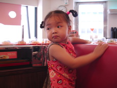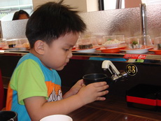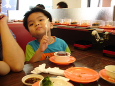 隨後到爭鮮吃迴轉壽司,寶寶會自己挑想吃的,自己趕快伸手去端。
