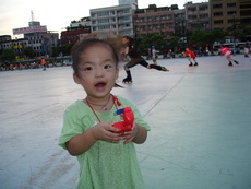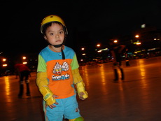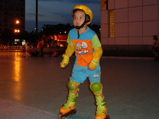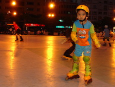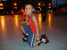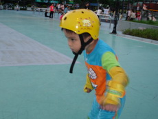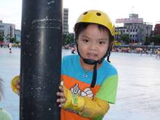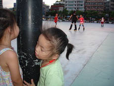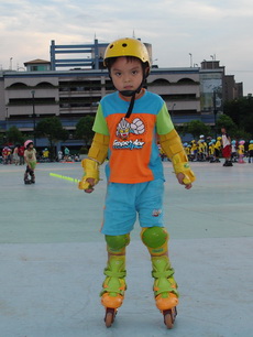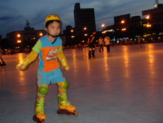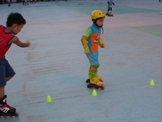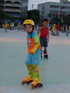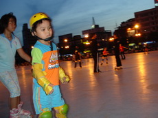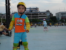 假日到板橋追風廣場練習直排輪,在這裡上課的小朋友非常多,今天甚至看到有一大隊練習花式直排輪的團體在練。