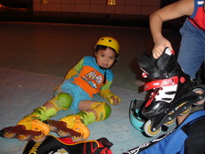 寶寶略微掌握到一些訣竅,可以溜得稍微順一點,也比較不會跌倒,因此一直不想走,還要多練習一些,從照片上來看,今天真可謂從天亮練習到天黑。