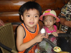 臨時決定去阿婆提議的金吉蛋休閒農場玩,所以沒有事先了解地理位置,在芎林附近繞了幾圈,也問了一些路人後,終於找到了。這裡之前的名字叫『金雞蛋休閒農場』,後來因為离流感恐慌,所以改名為『金吉蛋』,推廣宣傳一陣子之後,又即將改名叫『芎林休閒農場』。