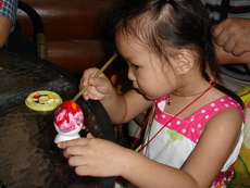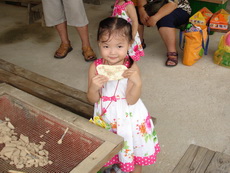 這攤的玉米花之所以大排長龍,原因之一是它的玉米花在爆出來後,還會加入奶油,用大電風扇一直吹,同時還得繼續一直攪拌,所以一顆一顆的,不會結成一塊,味道也不錯。而且因為買得實在太多,吃了一個多星期還沒吃完,但味道一直都不錯。