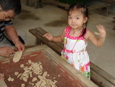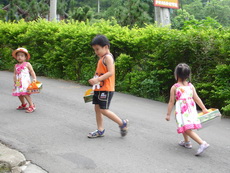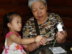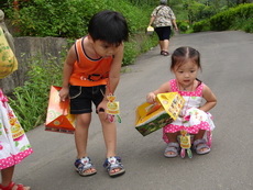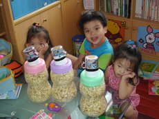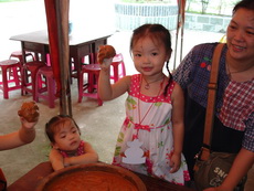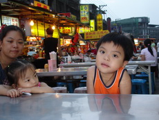 補充最後兩張照片。這是當天晚上在板橋南雅夜市逛的時候,看到一攤大排長龍的爆玉米花的攤子,我們很好奇是怎樣的玉米花值得這樣排隊,於是阿婆也排隊買了三桶用大奶瓶裝的爆玉米花。(一次一定得有三桶,不然會打架的)