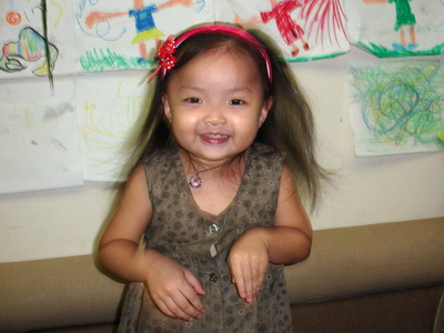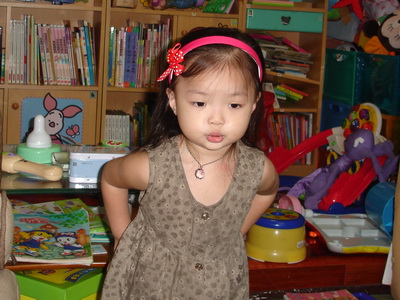 家裡的女孩子的頭髮通常都是綁著的,主要的原因是想讓小女孩留長頭髮,然後綁起來又會覺得比較輕爽,所以經常使用的都是橡皮筋、髮夾、髮束之類的髮飾。有天媽媽買了髮窟,原本是打算在她們起床後,還沒有空幫她們綁頭髮前,可以先用髮窟約束一下散亂的頭髮,但是蓉蓉和小潔都好喜歡這個髮窟,買回來的第一晚試戴之後,就不肯拿下來。隔天一起床又喊著要找髮窟,女人的愛漂亮果真是天性。