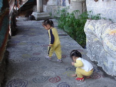 今天帶著蓉蓉和小潔去內湖的一家賣場,她們很興奮,因為平常上班的日子,她們也都是在阿婆家,固定的作息。因為爸爸學校沒課,所以帶她們出去逛逛,兩個人聽到要出去,動作很快地穿衣服鞋子,坐車的時候,發音一直不標準的小潔不斷重覆地唸著『爸爸帶偶狗骨頭、爸爸帶偶狗骨頭…』這是什麼呀?什麼狗骨頭?我們是要去 Cosco 啦!