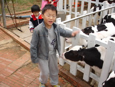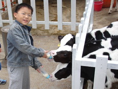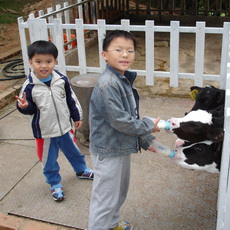 兩週內再度到四方鮮乳牧場,主要的目的是今天中午大夥聚在一起吃完飯後,阿婆看到寶寶和達哥難捨難分的樣子,於是把達哥和婷婷也拉到我們的車上,一起出去玩了。於是一台車載著四個大人加五個小孩,爸爸已經好幾年沒有帶著婷婷姐姐和達哥一同出去,真是好懷念以前共同出遊的日子。一路開上高速公路,這才決定帶他們兩個去四方鮮乳牧場,可以讓他們餵牛喝奶及滑草。阿姨聞訊,一個人開著車又狂飆前來,與我們會回。