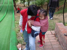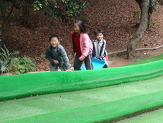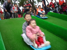 達哥一看到滑草,完全沒有一絲遲疑地滑了下去,一趟又一趟地滑著。偏偏寶寶今天又完全沒膽,一次都不敢玩,反倒是蓉蓉比較不怕,讓達哥陪著也滑了下去,小潔上次滑草時受的傷已經好了,心裡應該還是害怕吧,不過她還是有讓達哥載著滑。